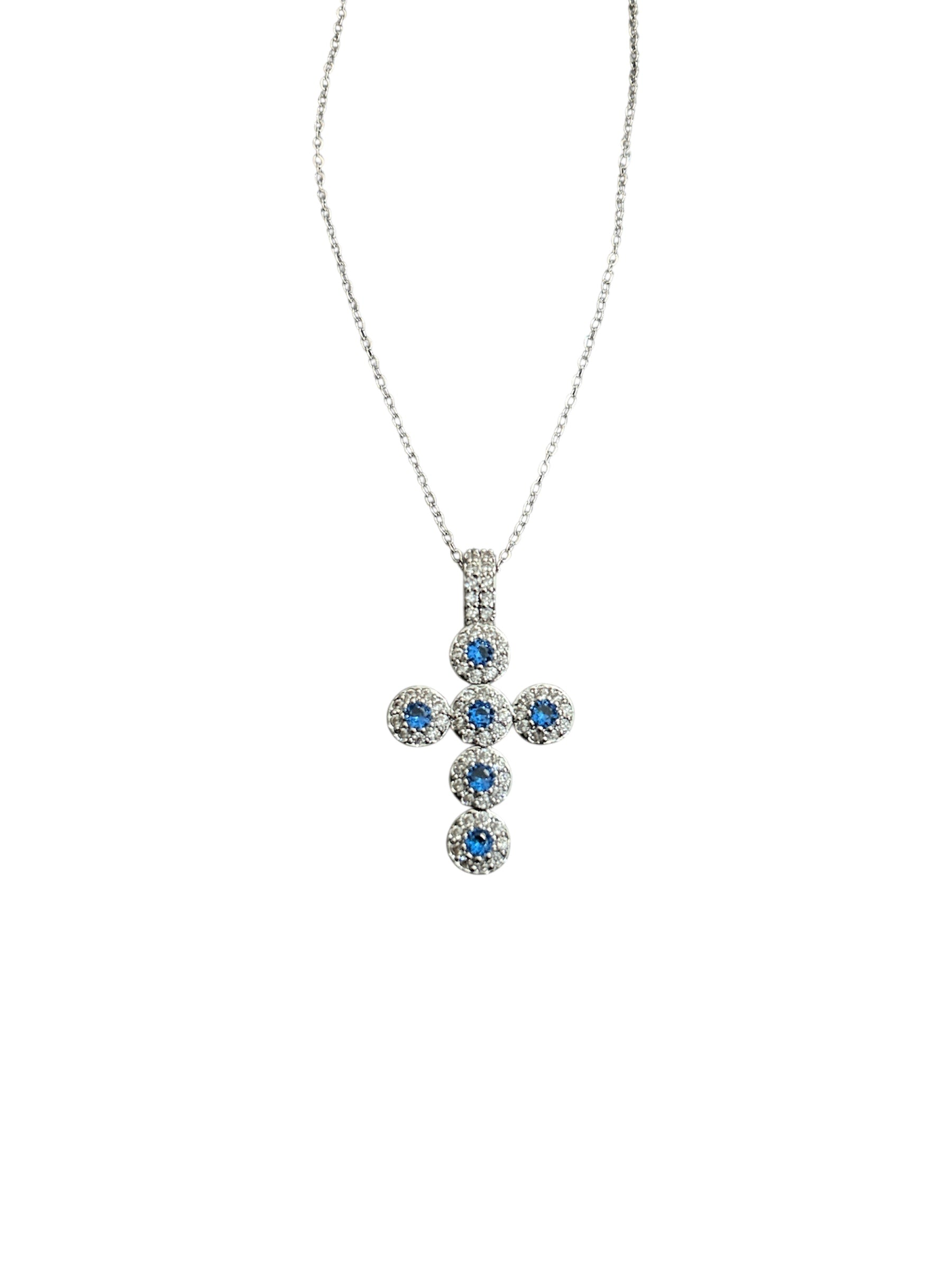 Collana in acciaio inossidabile e ciondolo croce in ottone zirconia galvanizzato